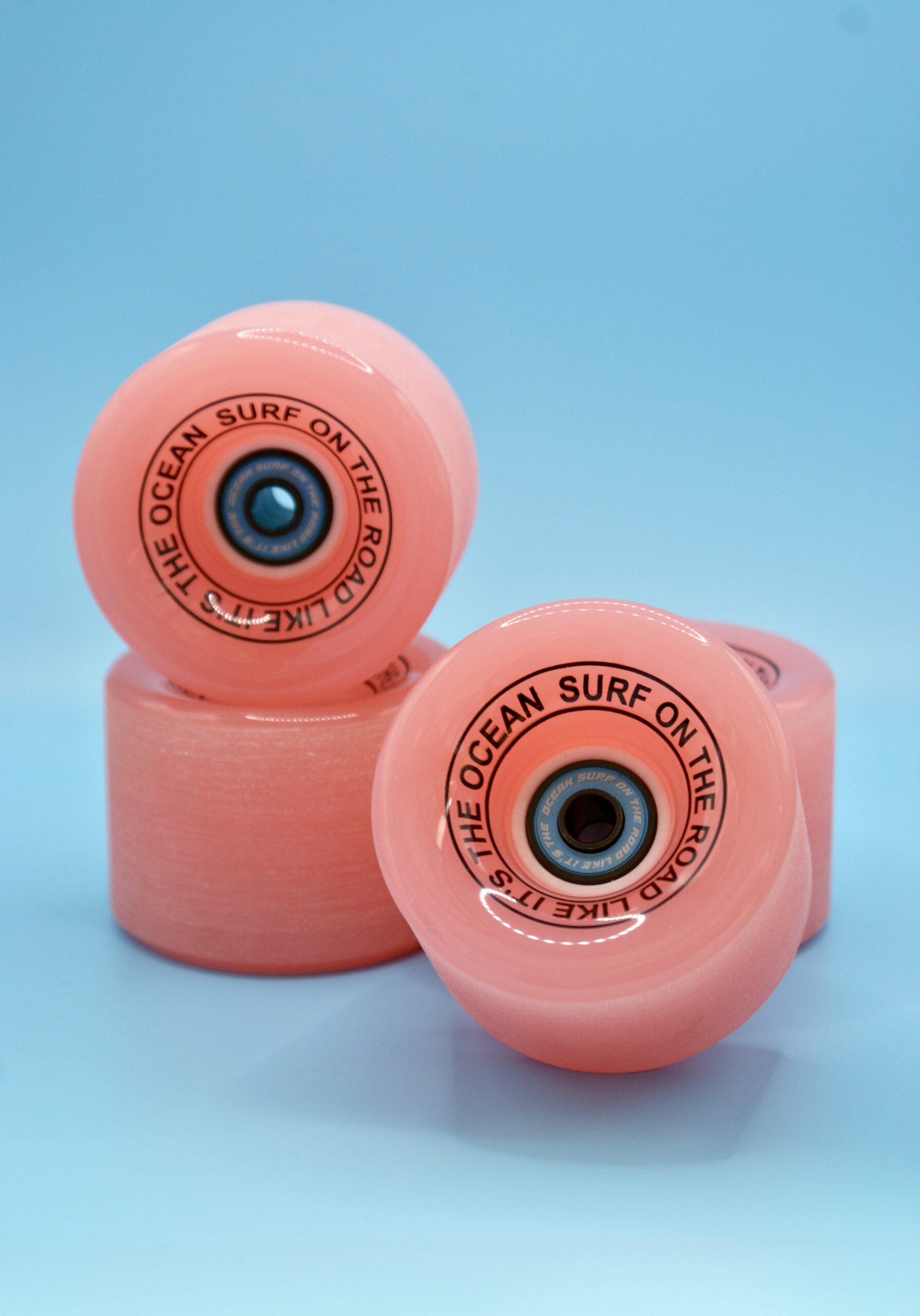 Peach pink all round longboard wielen.